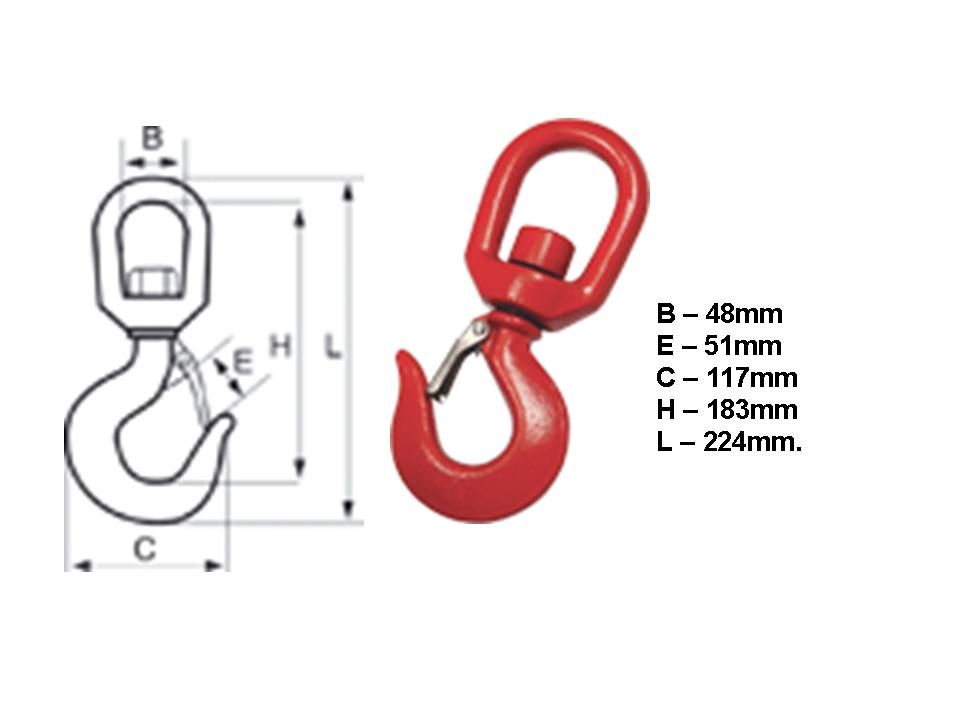 Gancho giratorio con gatillo de seguridad. Carga máx. 4,5 Tn. Medidas en foto.